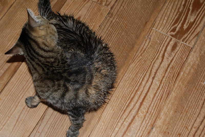 昨日に続き風呂上がりの猫ですが、どうもお風呂が気に入ったみたいで、人がお風呂に入っていると、入り口の外から鳴いて呼ぶようになってしまいました。まるで一緒に入れてーぇと言ってるみたいに聞こえます。