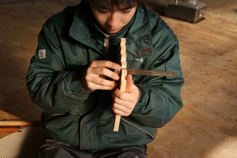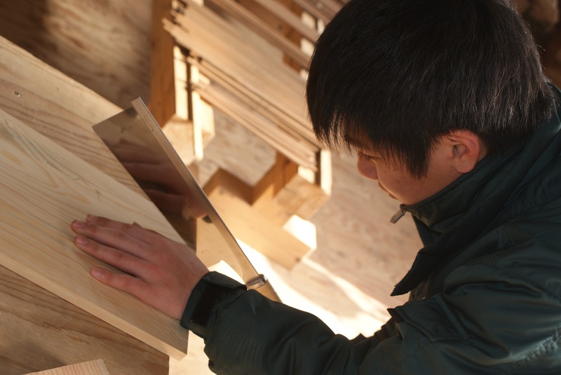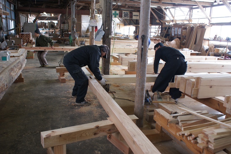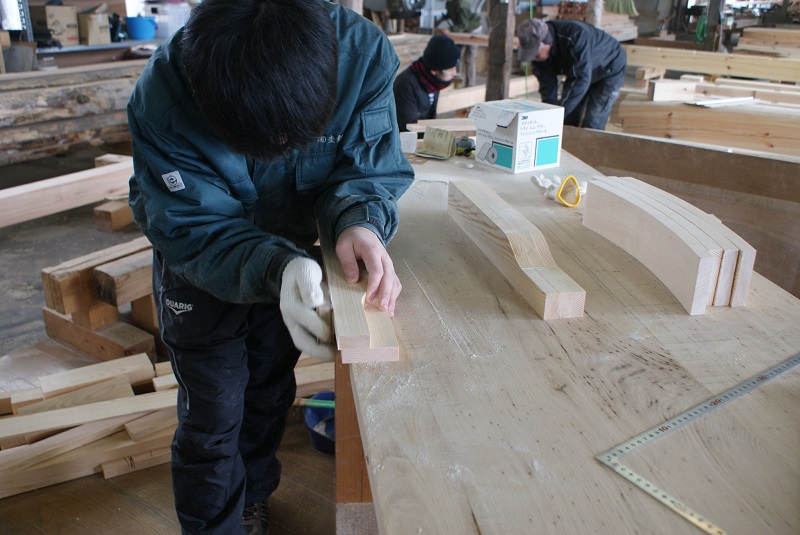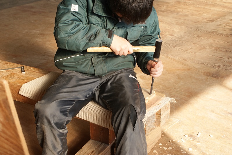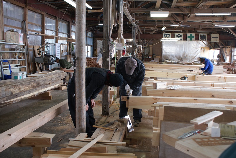 定年退職はしましたが、今でも若手指導に来てくれている遠山棟梁は、大和田の墨付けを見たり、安保の刻みを見たりと八面六臂の活躍をしてくれています。