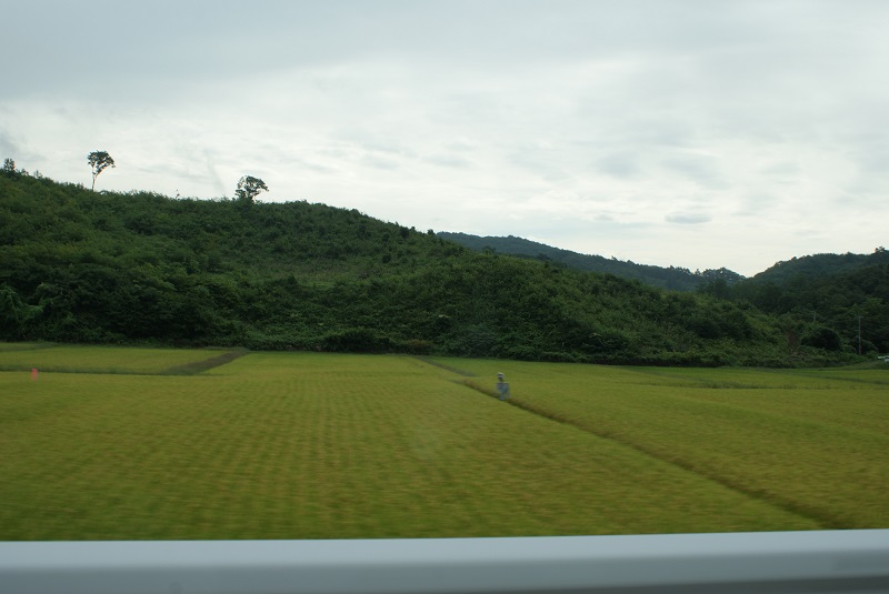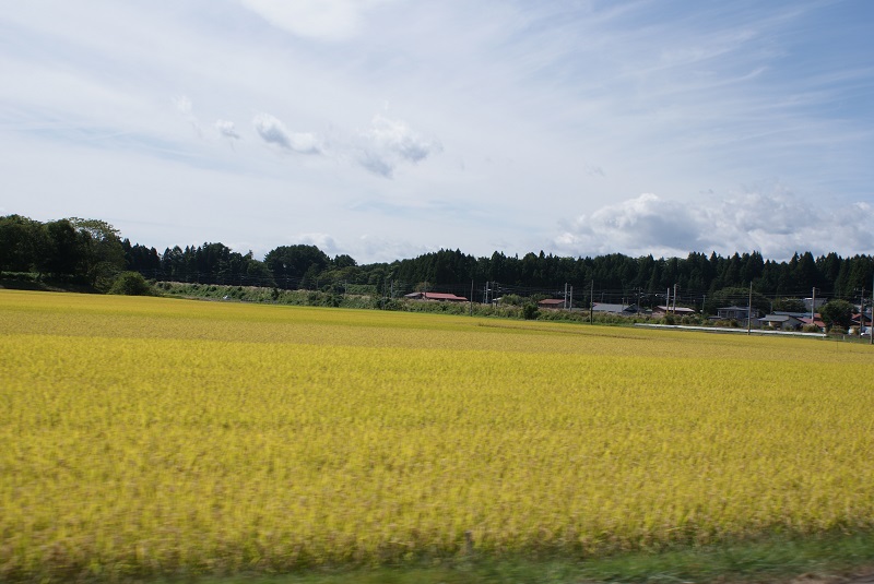 田んぼの稲が黄金色に輝いていて、新米が早く食べたくなります。