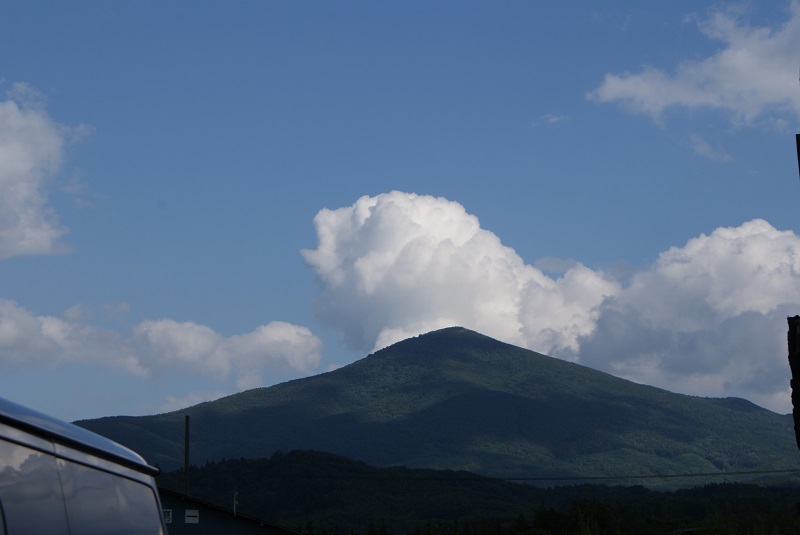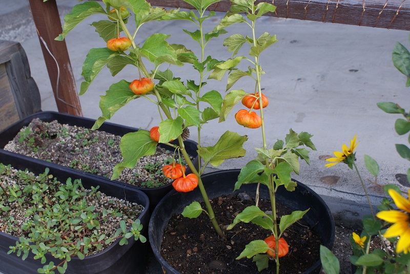 一昨日の帰り道に見た入道雲と事務所前に植えられたホオズキです。