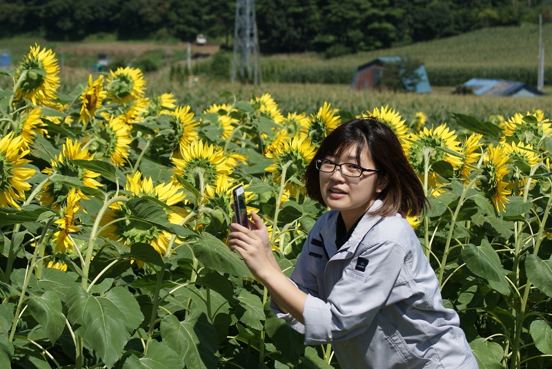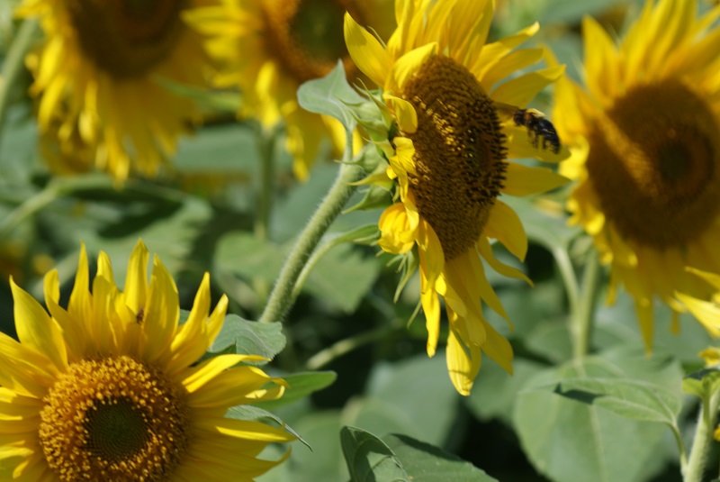 向日葵の密を集める蜂を見つけた弊社SNS担当の鈴木です。