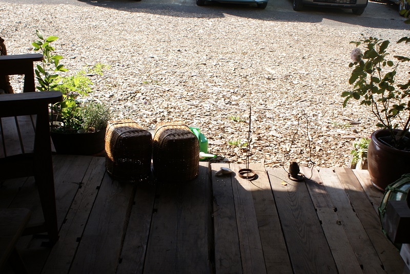 我が家のポスト脇には休憩用の椅子があります。ここに座っていると良い風が吹いて気持ちよく休めます。