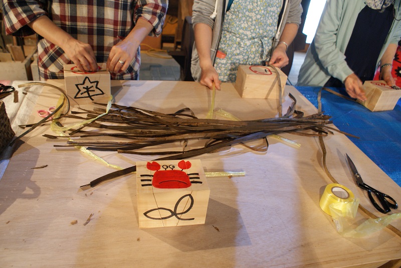 昨日の樹皮編みワークショップからです。こらはなんだ~と思ったら型のようですね。