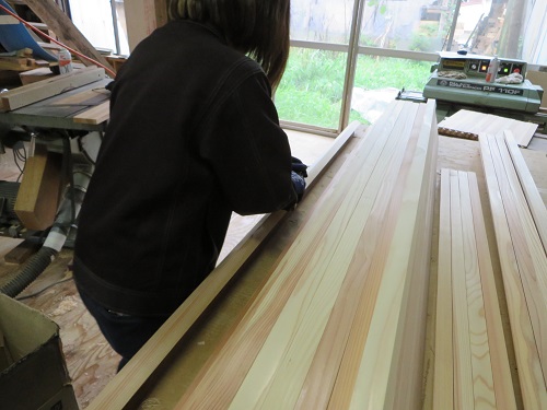 なにやら、無茶な注文をされても難無くこなしている建具職人の面々です。いや、苦心しても要望に応えようとしていると言い換えます。でも、これが出来るのは、木が良いからです。