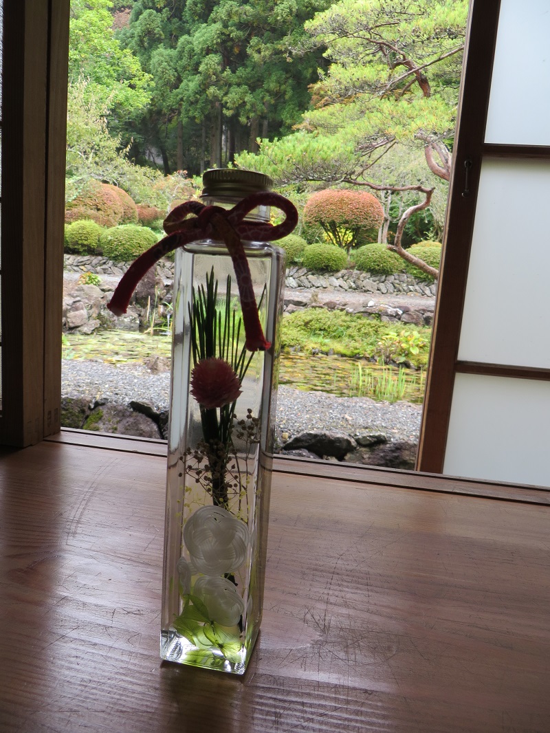 5年前に大改修させて頂いた鉈屋町のお住まいを訪ねてみると、我々が創作した飾り棚がこの様な雰囲気で飾られていました。