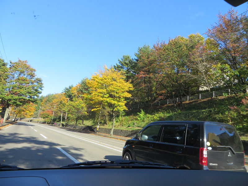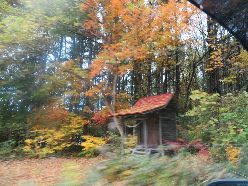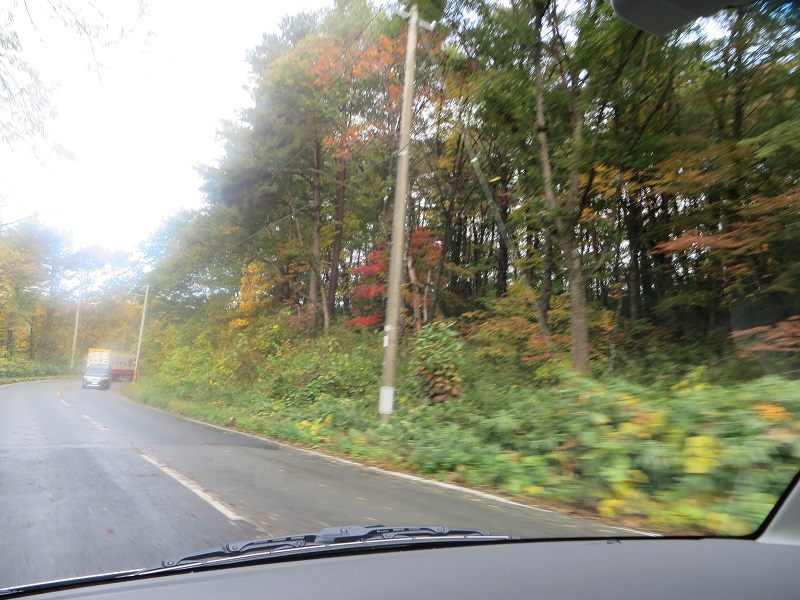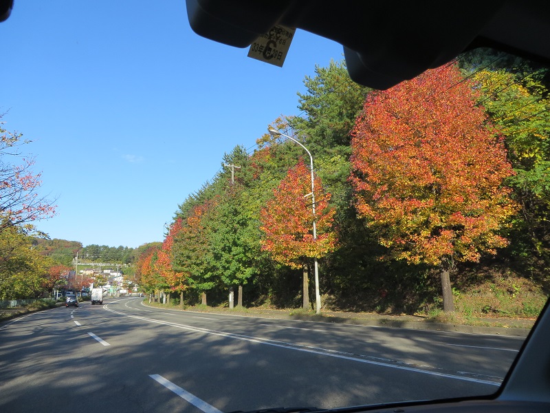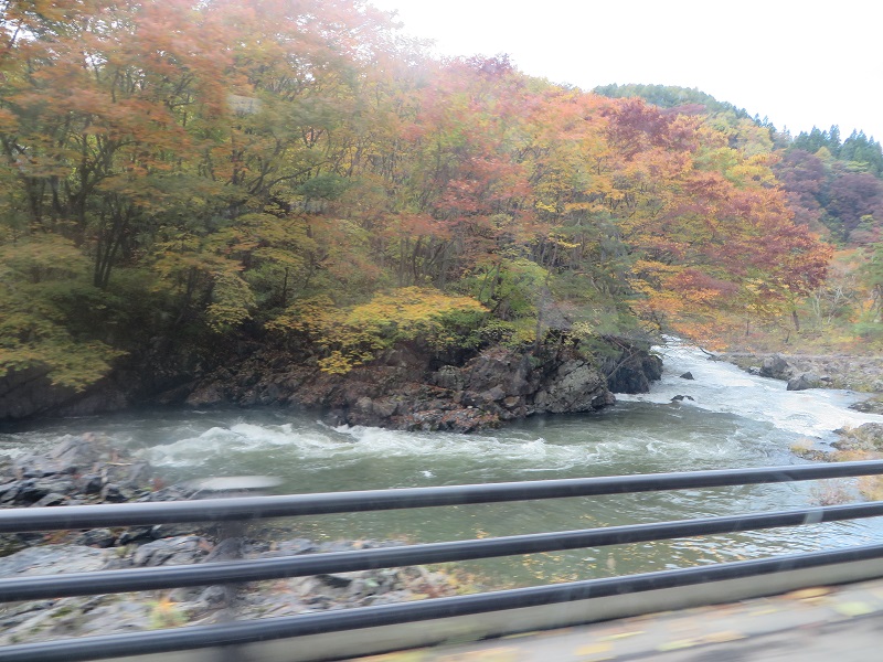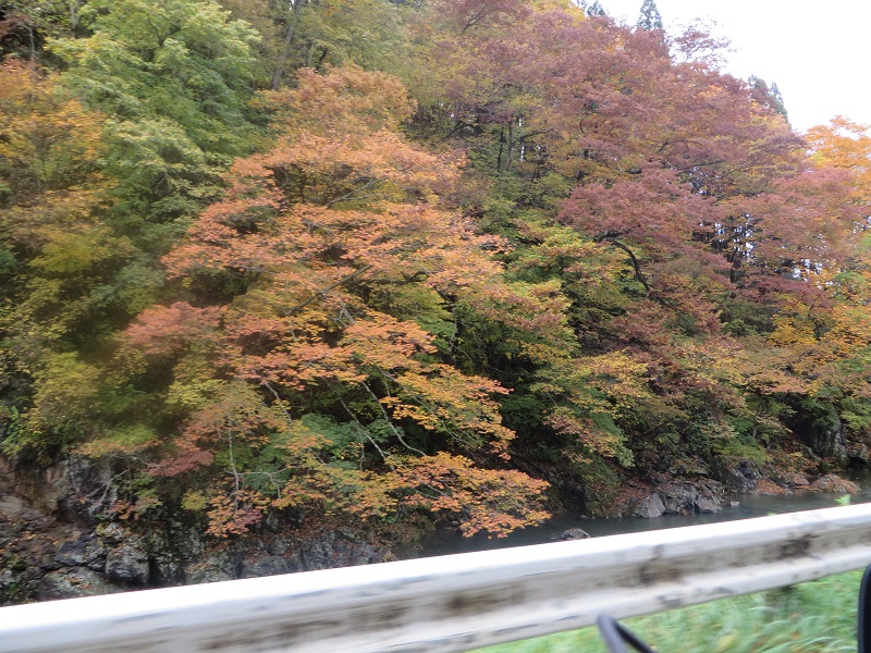 二戸の技能際に向かう途中の国道沿いの紅葉が綺麗でした。馬仙狭下の馬淵川渓谷だと思われます。