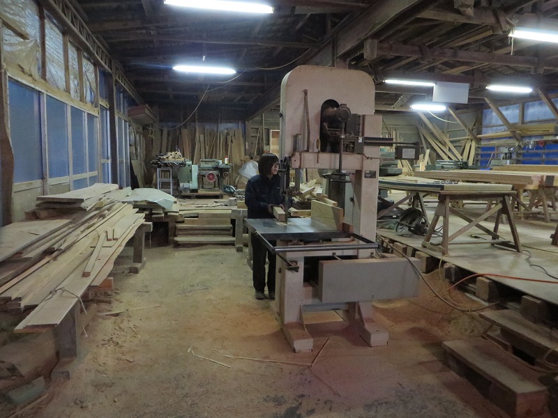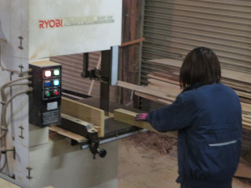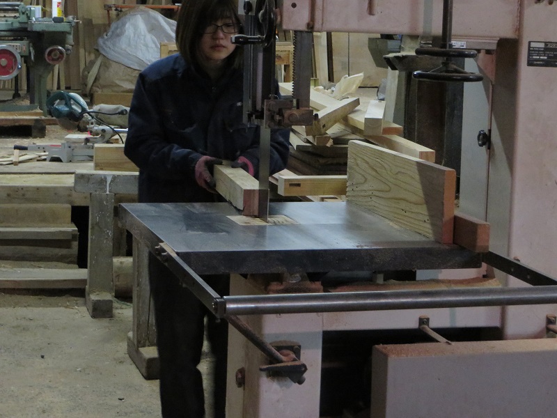 テーブルの足を創るための木取り加工をしている作業風景です。