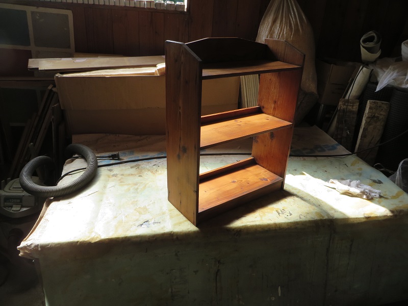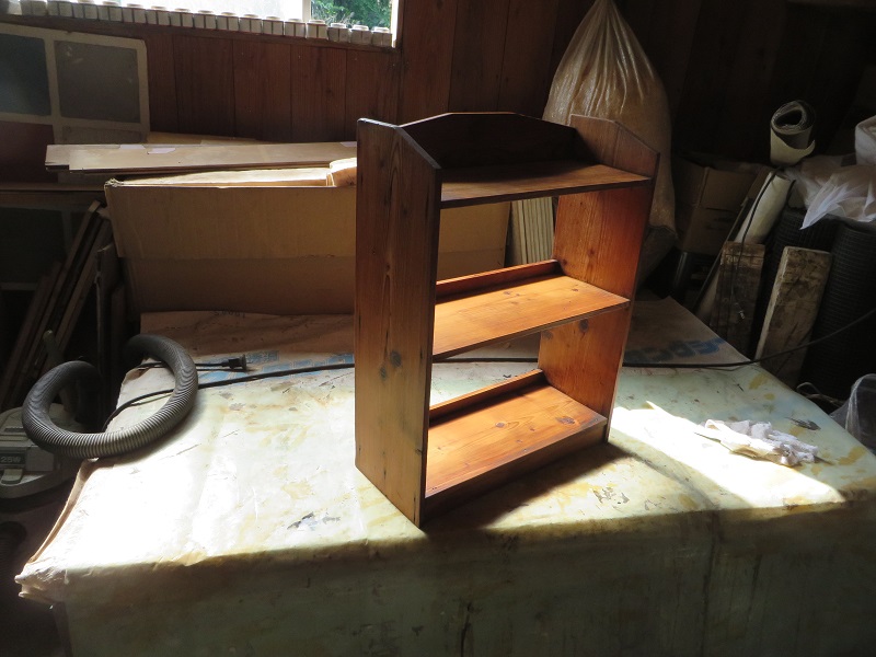 場内の塗装小屋では、小棚の修復再生が行われていました。洗面化粧台の脇棚に使わせて頂く予定です。