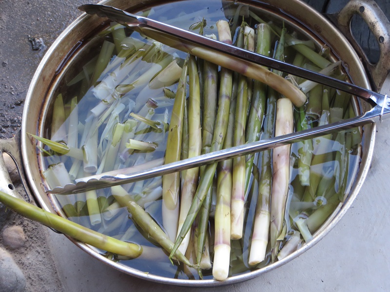 姫竹の季節です。昨日有難くもいただいたので、早速竈でボイルしました。