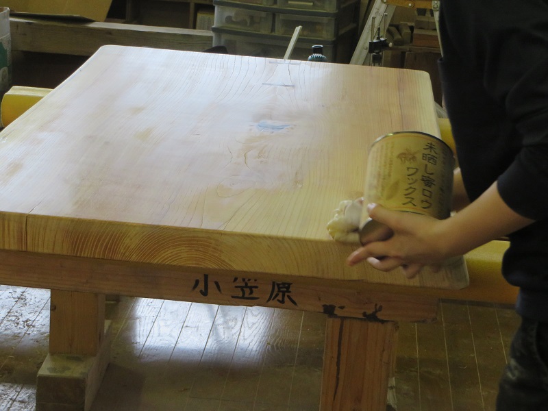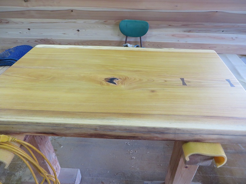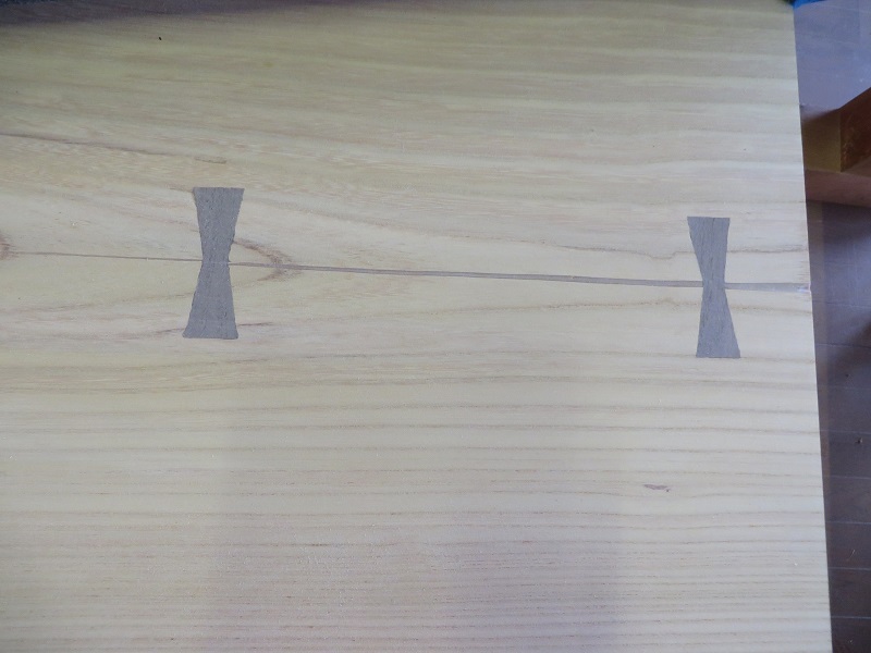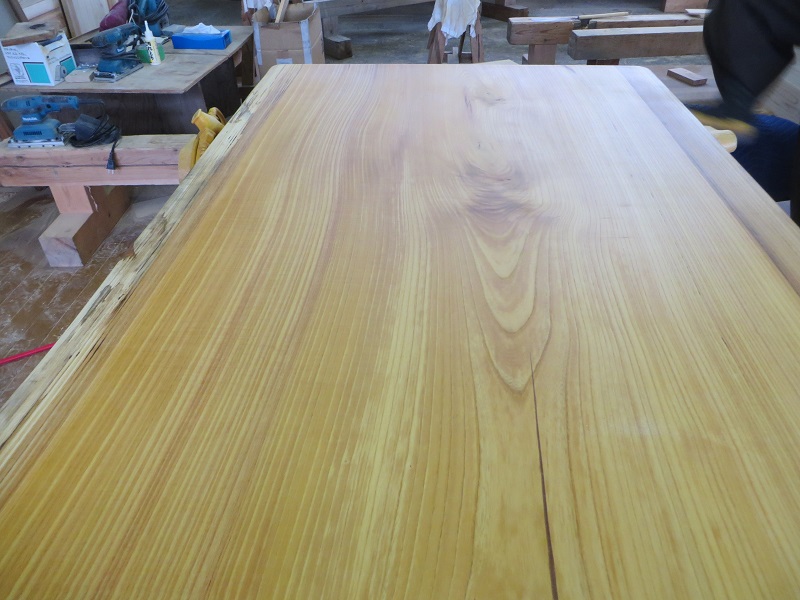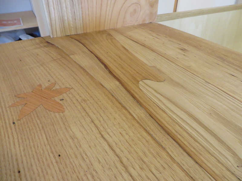 以前日記でもご紹介した欅のテーブル造ですが、節穴の処理や契り取り付けの様子です。