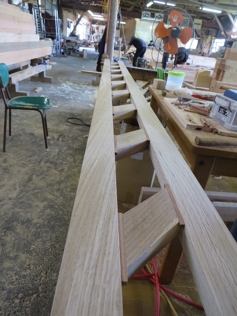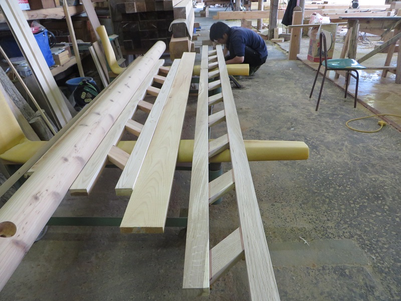 前回日記で書いた建具職人の手によるロフト階段のササラを今度は家具職人が直していました。