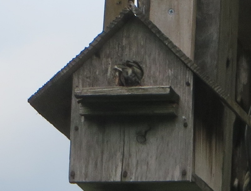 好摩の巣箱に小鳥が入り込む瞬間を写真に捉えました。
