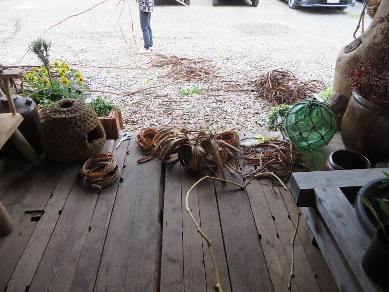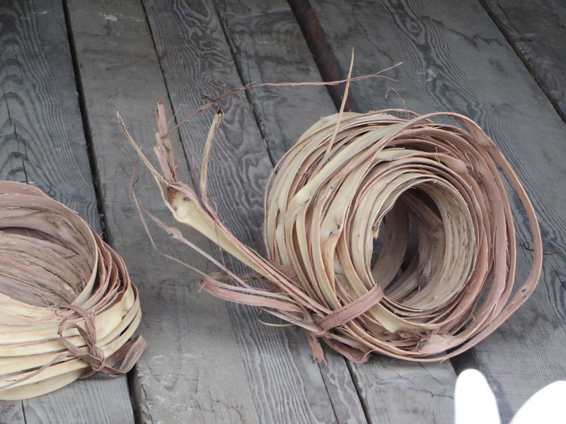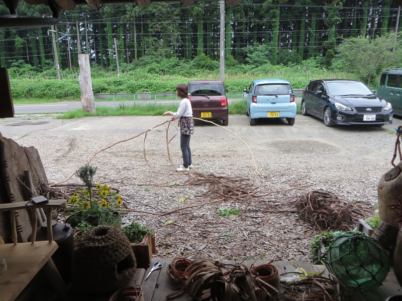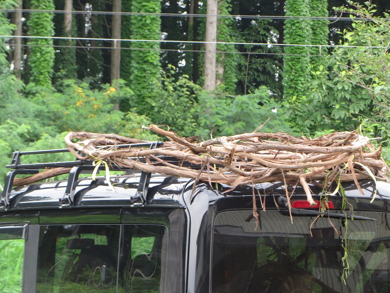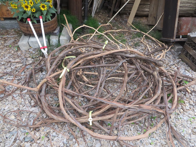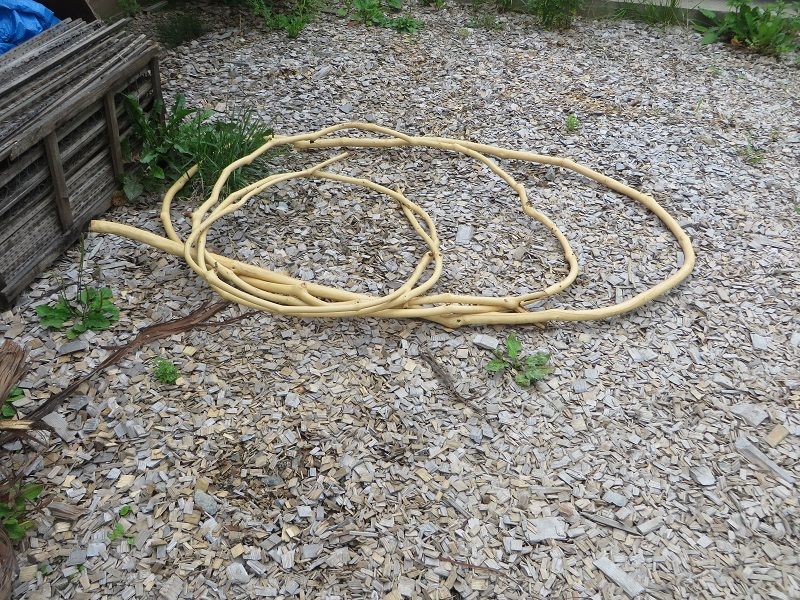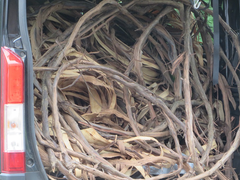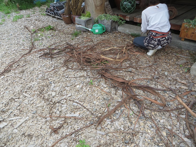 山葡萄の蔓が届きました。樹皮を剥いで樹皮編み籠造りの材料になります。