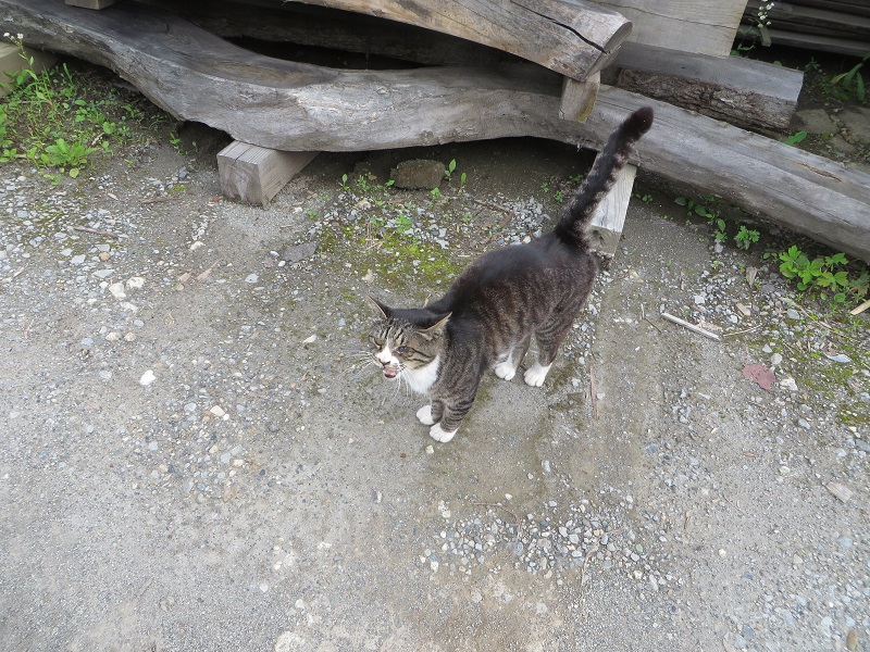 場内を散策していると猫が散歩の付き添いしてくれます。小鳥も何故か付いてきます。