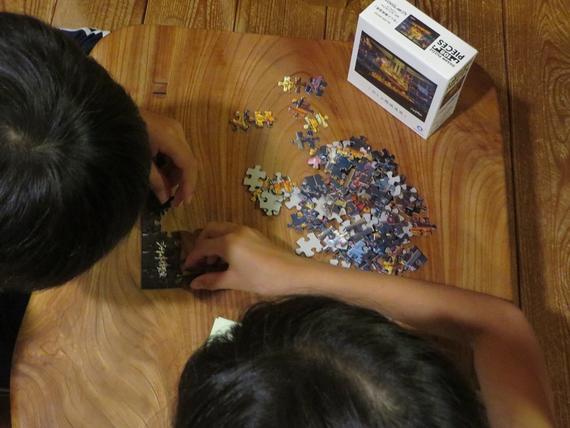 孫たちが夏休みで遊びに来ています。脳トレのジグソーパズルは携帯ゲームより良いですね。