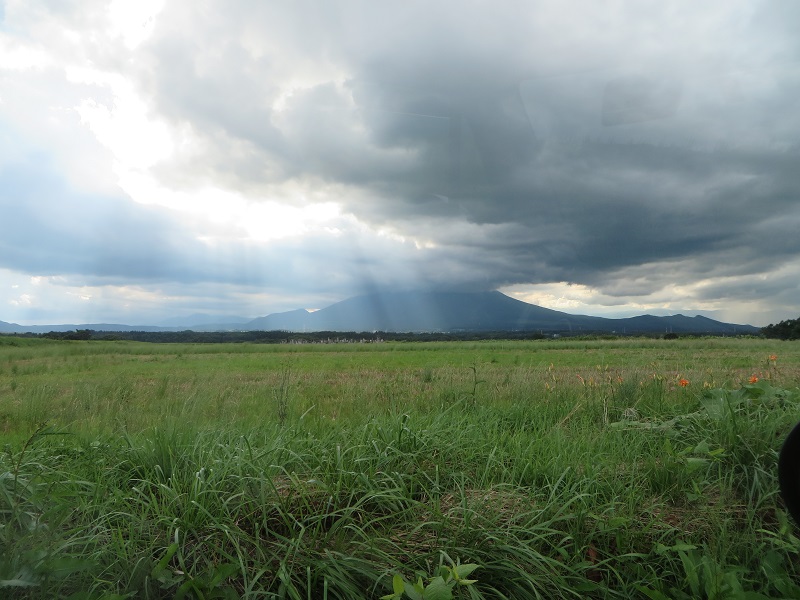 猛暑が始まる前日の夕刻、雲の中に一条の光が見えました。