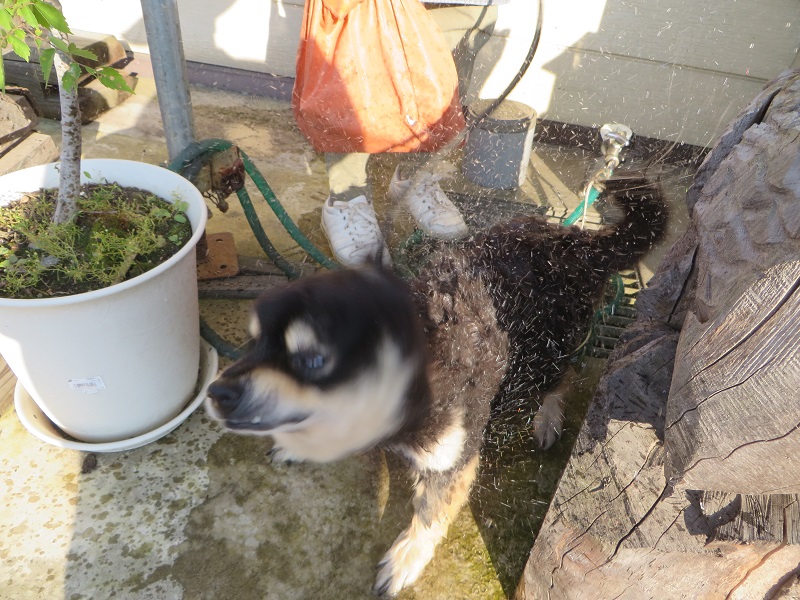 水浴び大好きなのは良いのですが、ブルブルと水を飛ばすので、こちらも塗れてしまいます。