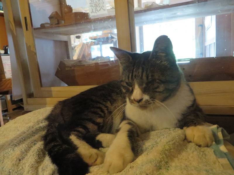 会社に居る猫が夏になりどこかに消えていましたが、久し振りにやってきて寛いでいました。冬は毎日いるのですが、夏はどこかで食事もしている様です。