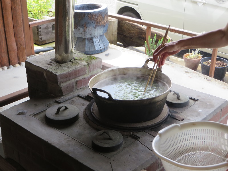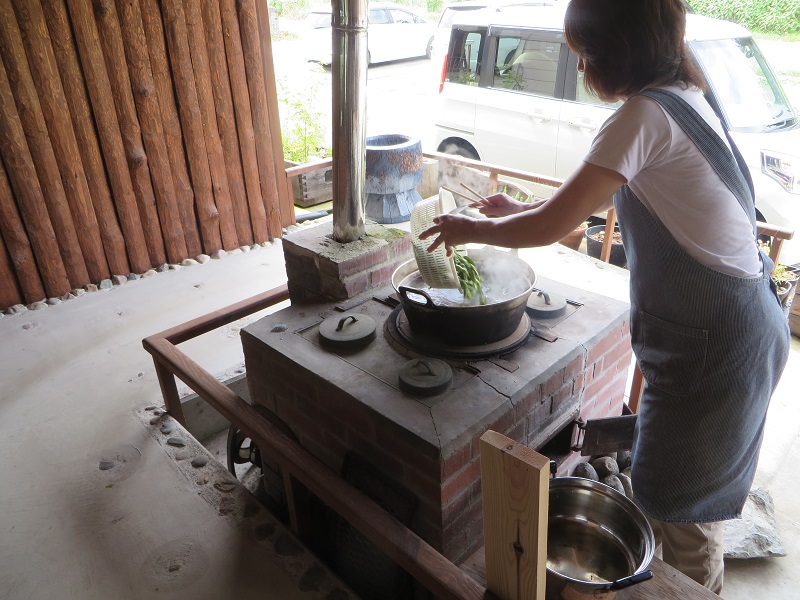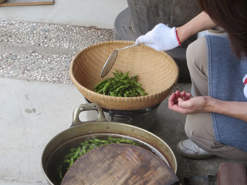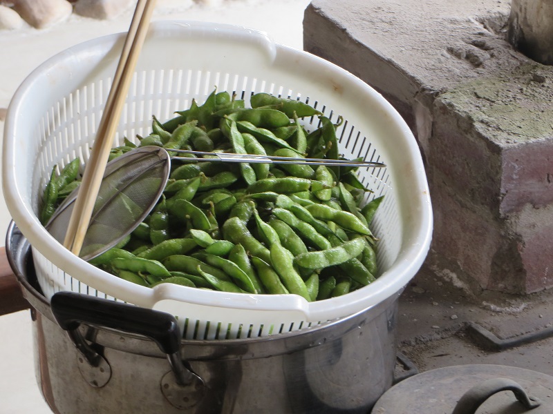 竈では枝豆を煮たりモロコシを煮たりして楽しんでいます。