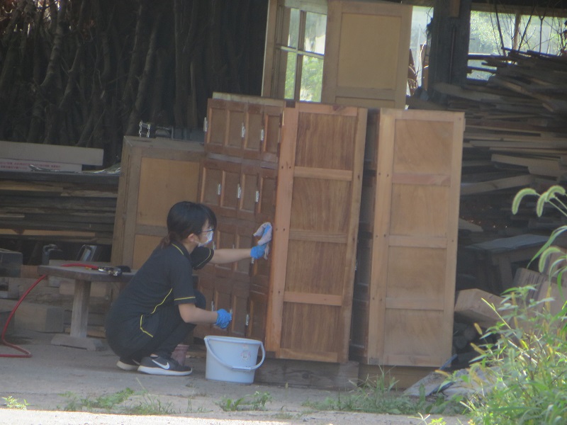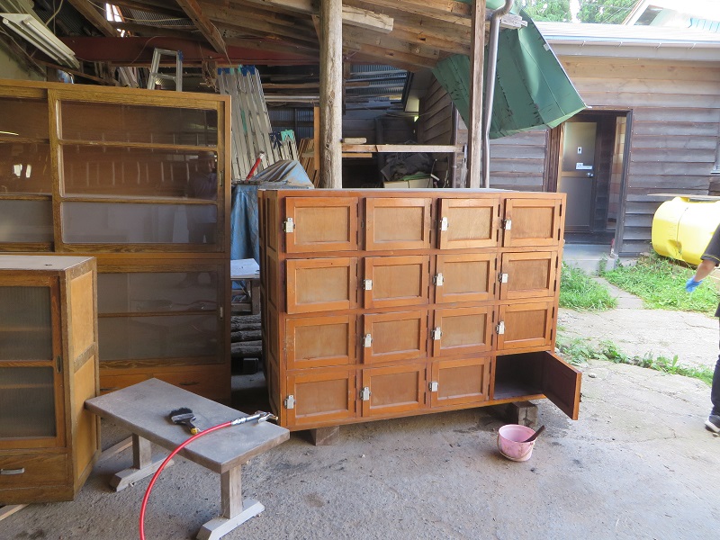 懐かしい雰囲気の下足箱を修理再生して扱います。