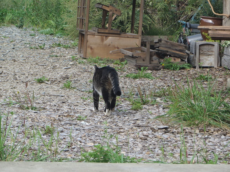 散歩に必ず付いて来る猫です。