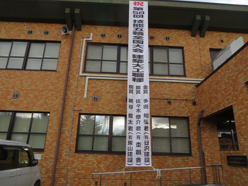 二戸の職業訓練校に行ってきました。技能五輪全国大会での受賞結果がノボリではためいていました。