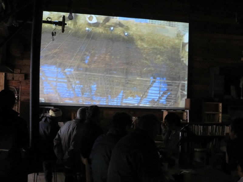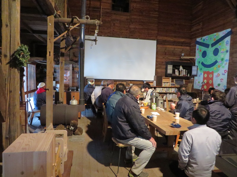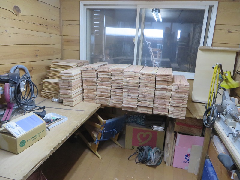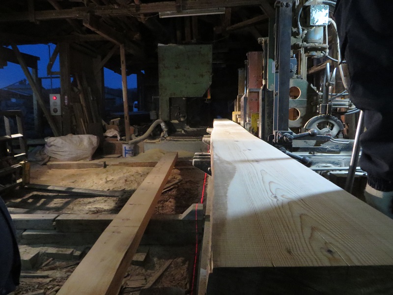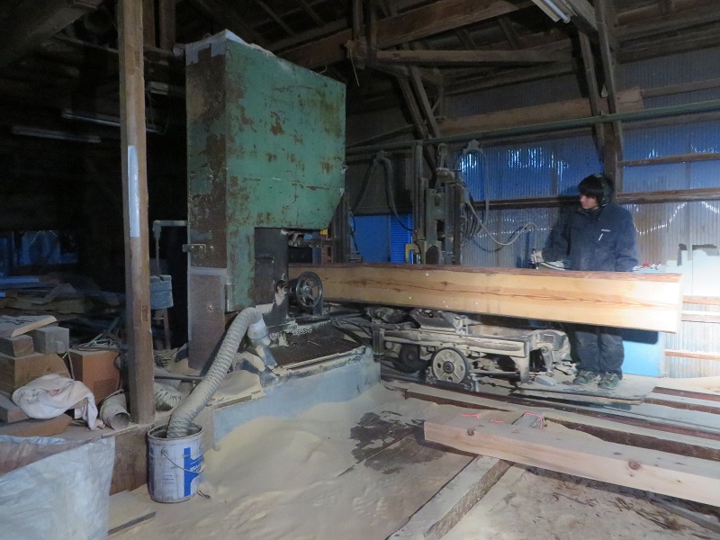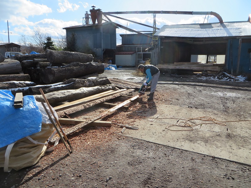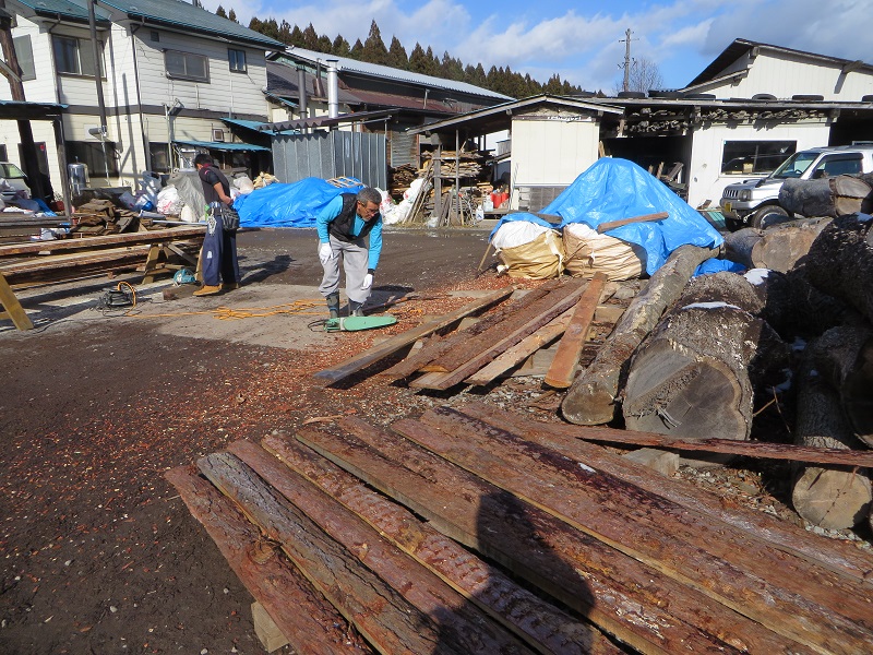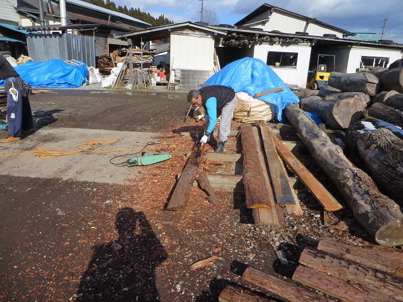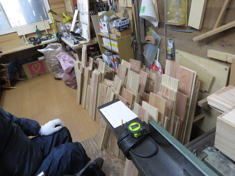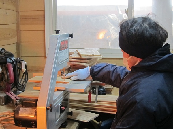 木箱の木取りの作業が行われています。暖を取るのもお忘れなく!!(栗城)