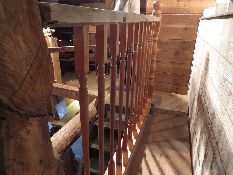 階段の上がり縁に手摺が取り付けられて安全に上がって歩く事が出来る様になりました。