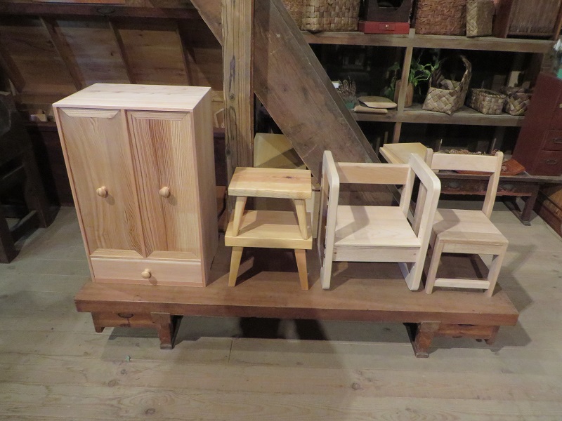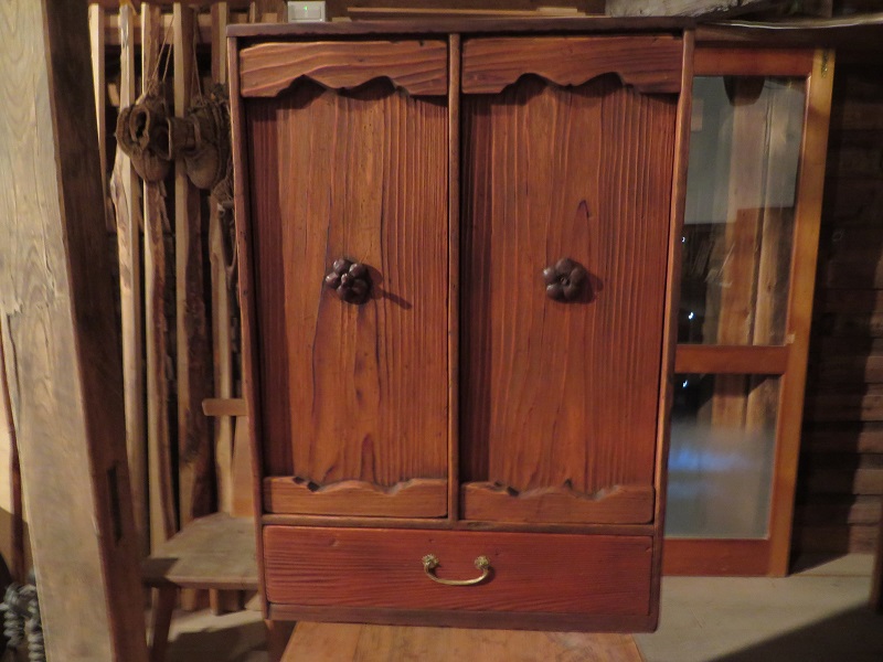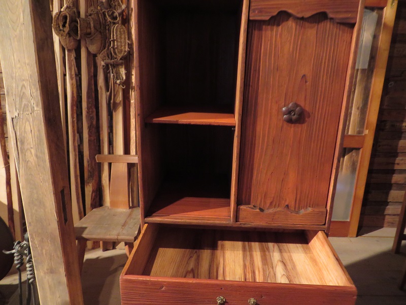 木のお店に古民具の修繕された箱棚が仲間入りしました。