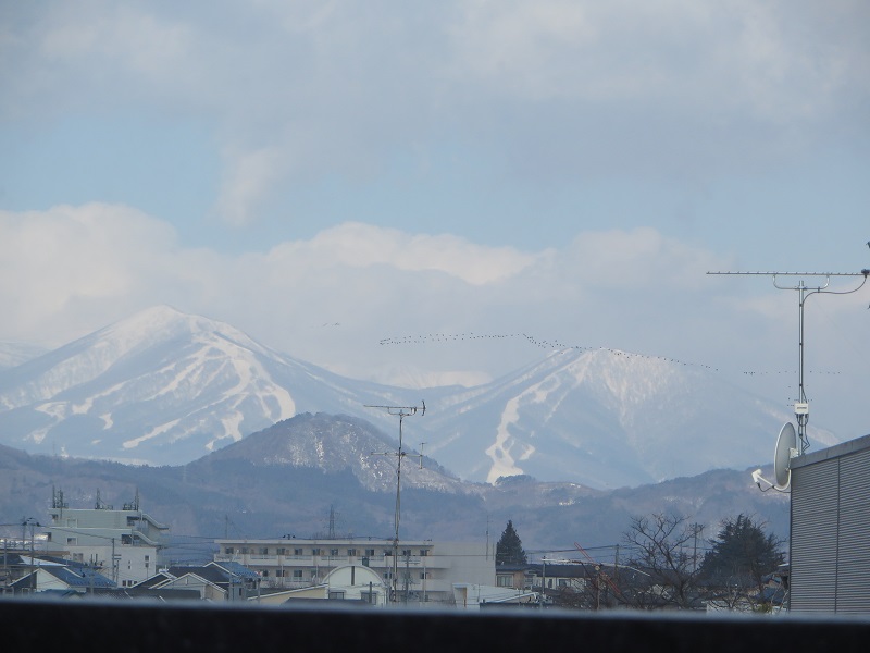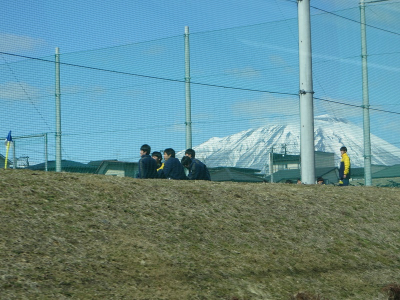 春めいて、窓の外には小鳥たちが楽し気です。公園のサッカー場も楽し気です。