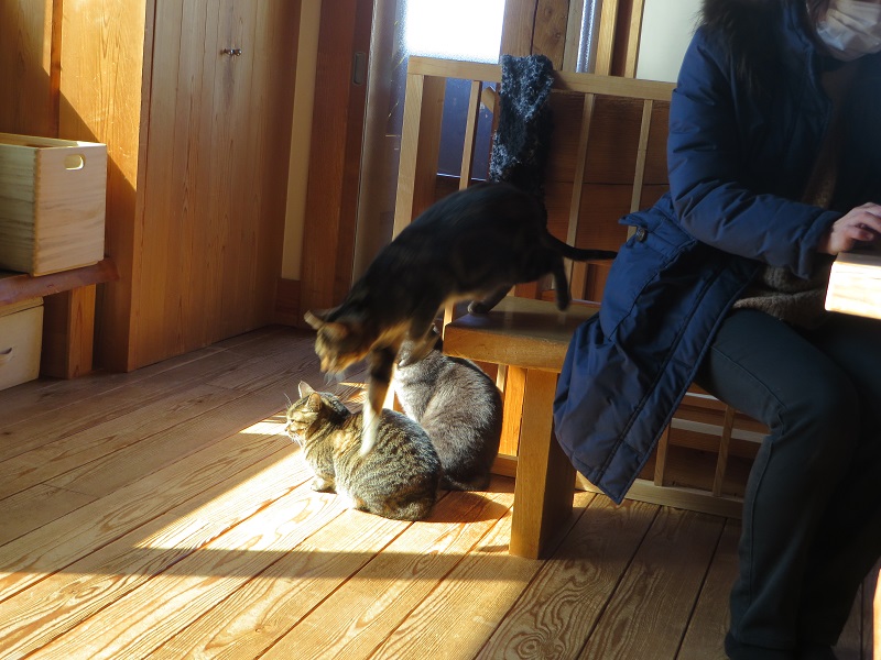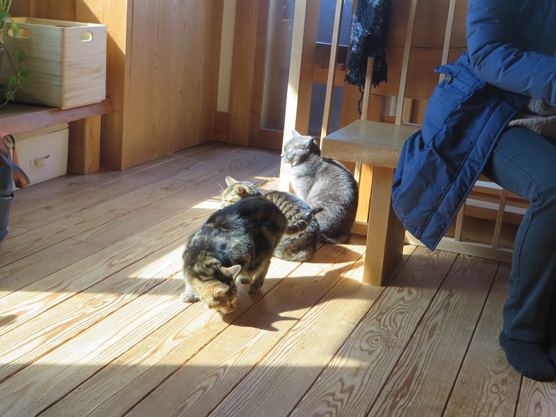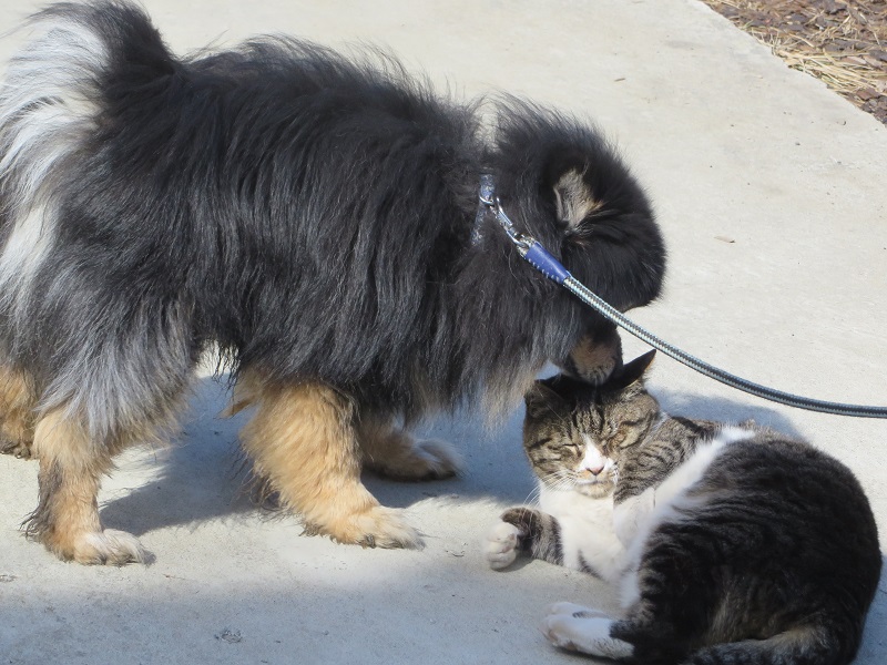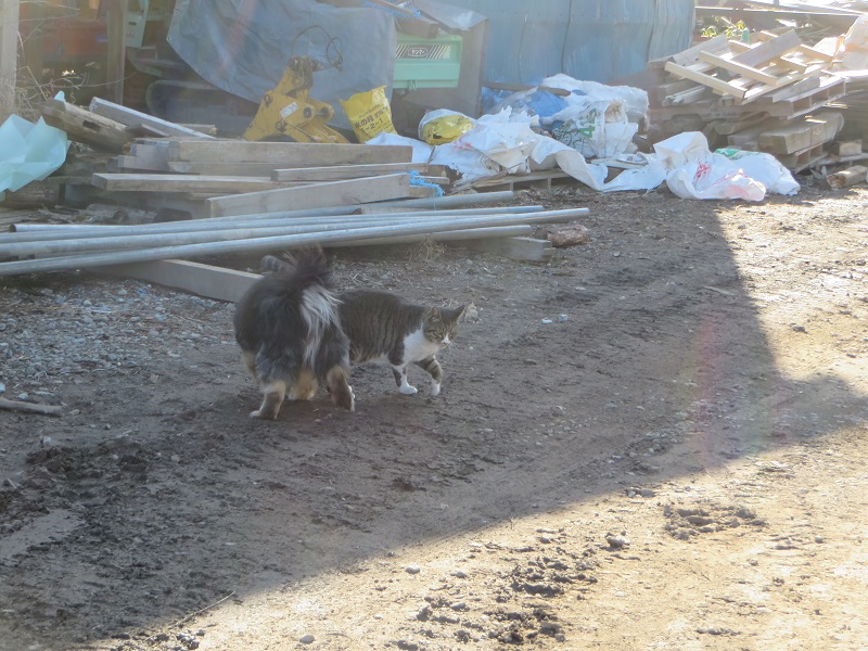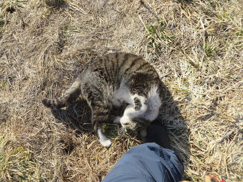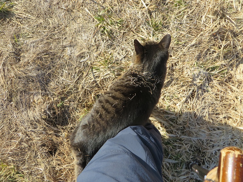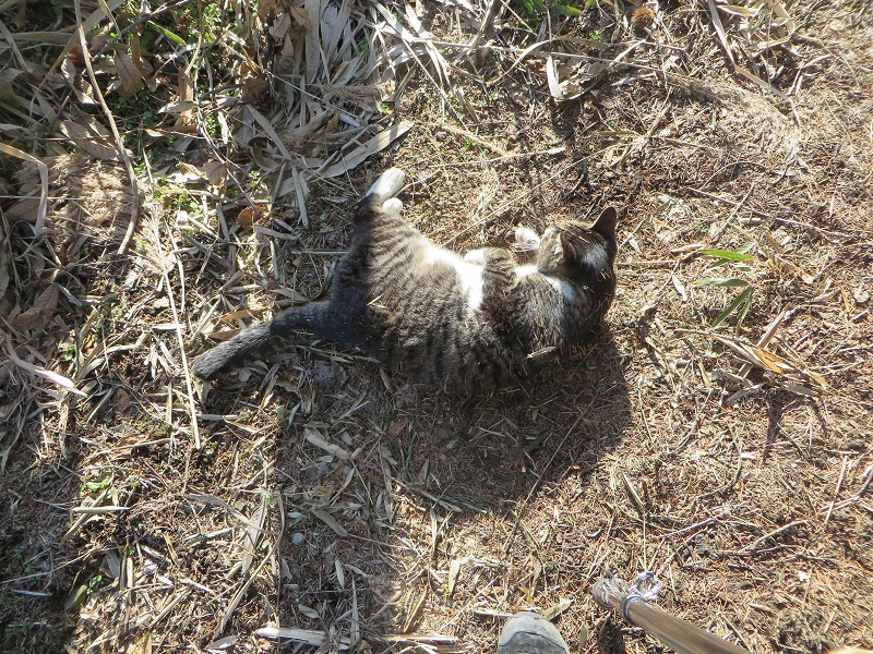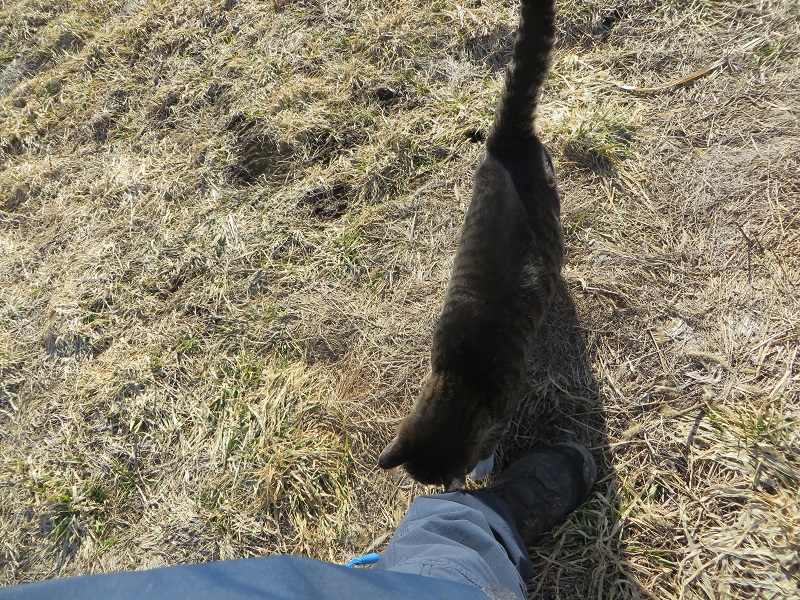 裏庭を散歩していると、いつの間にか猫が付いてきて春を楽しんでいます。