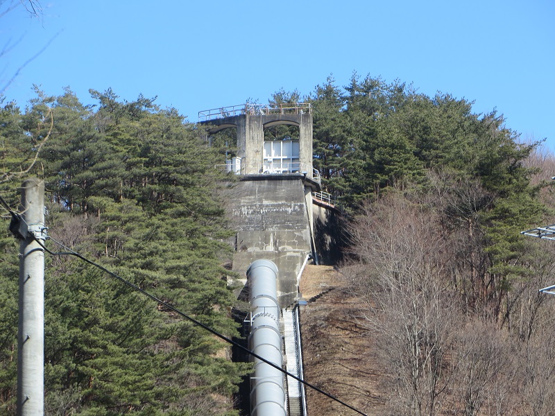 四十四田ダムの発電の為に水を落とす設備の上屋が絵になります。