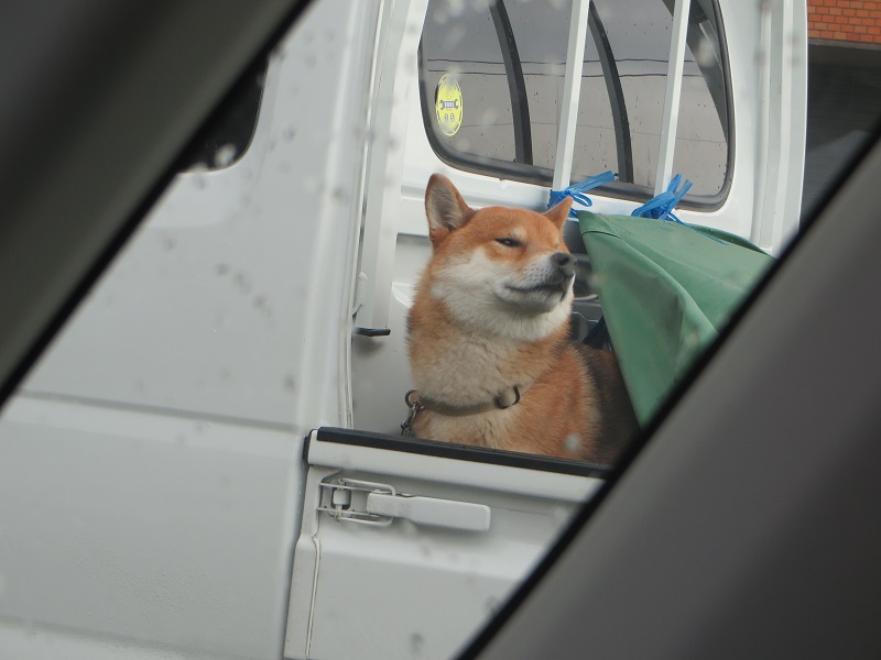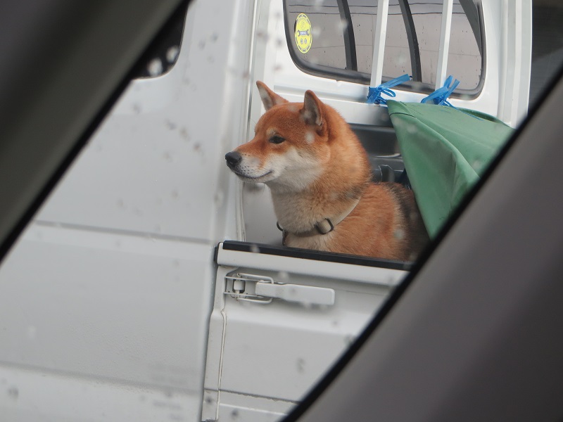 信号待ちで停車して隣の軽トラを見たら、荷台に犬が顔出していました。