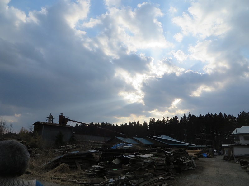 今日から卯月4月ですが、写真は弥生3月の空からのビームの様な光景と黄金に輝く空です。更に裏の田圃から見た当社作業場と上空です。