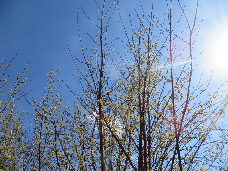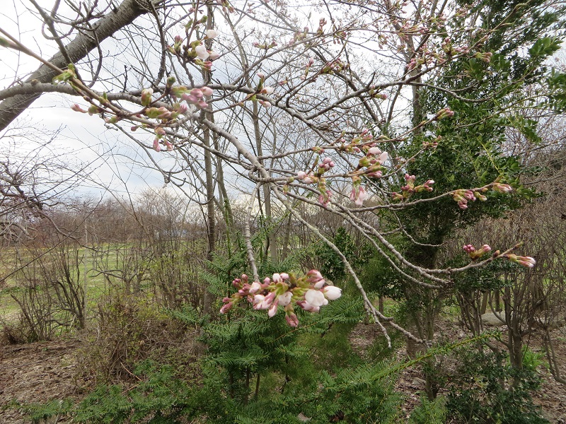当社の裏庭の桜も蕾が膨らんでもう直ぐ咲きそうです。サンシュウユは綺麗に咲いています。