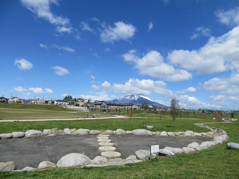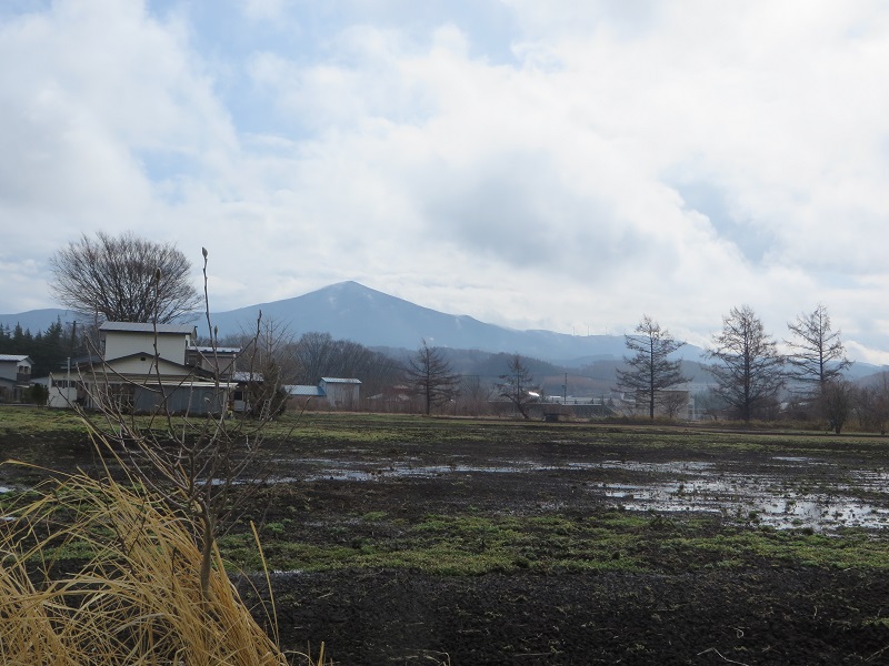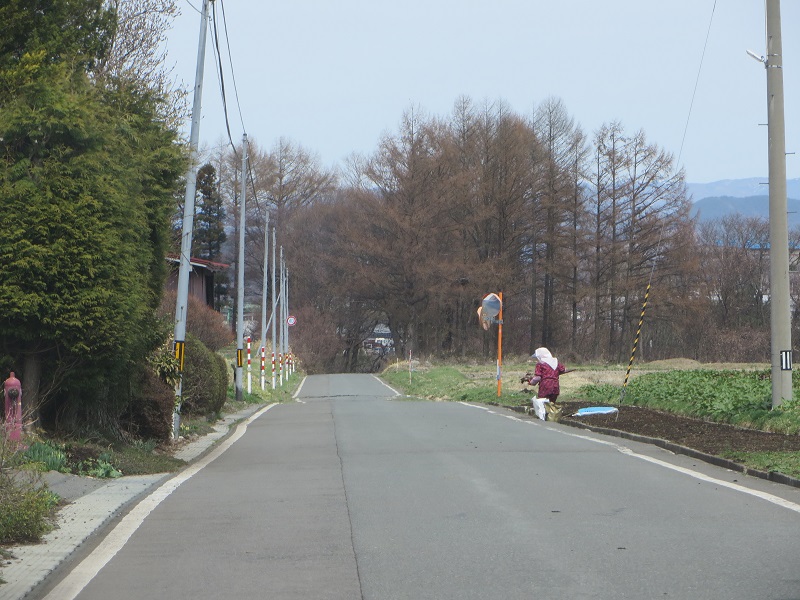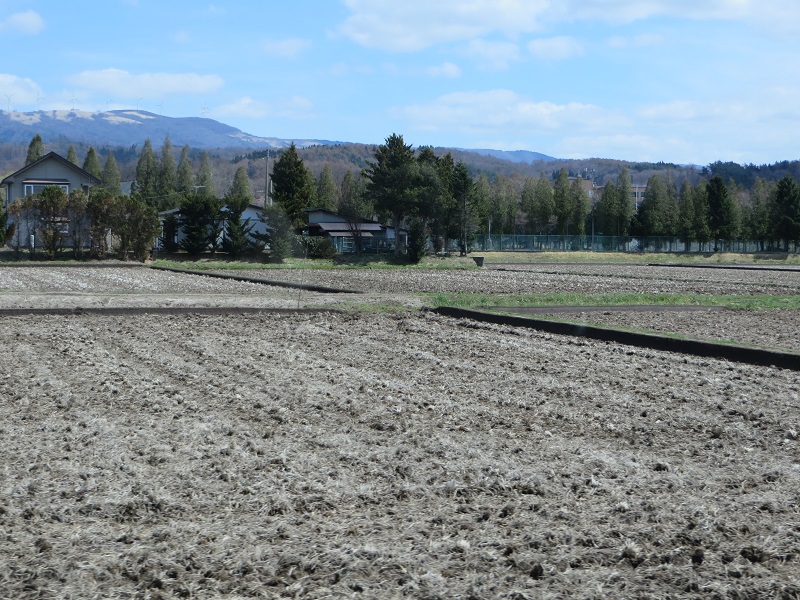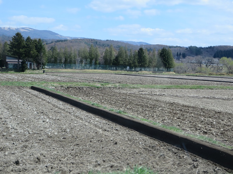 農家さんの働く姿も見られます。左に岩手山、右に姫神山が望める道です。