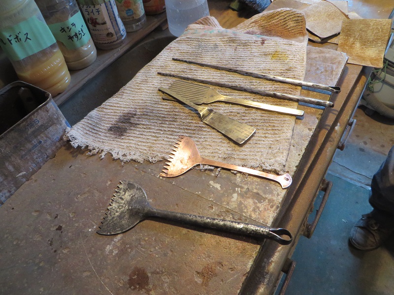 囲炉裏で使っていたと思われる古民具を手入れしていた様です。磨くと光りますね。