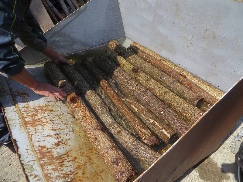 昨年菌を植えた茸のホダ木の水付けをしています。フォークリフトの除雪バケットが役立っていました。手間を考えるとスーパーで買った方が楽かと思いますが、お金では買えない楽しさを感じます・・・でも自分でしているのではないのが問題です。・・・半身麻痺の悲しさです。