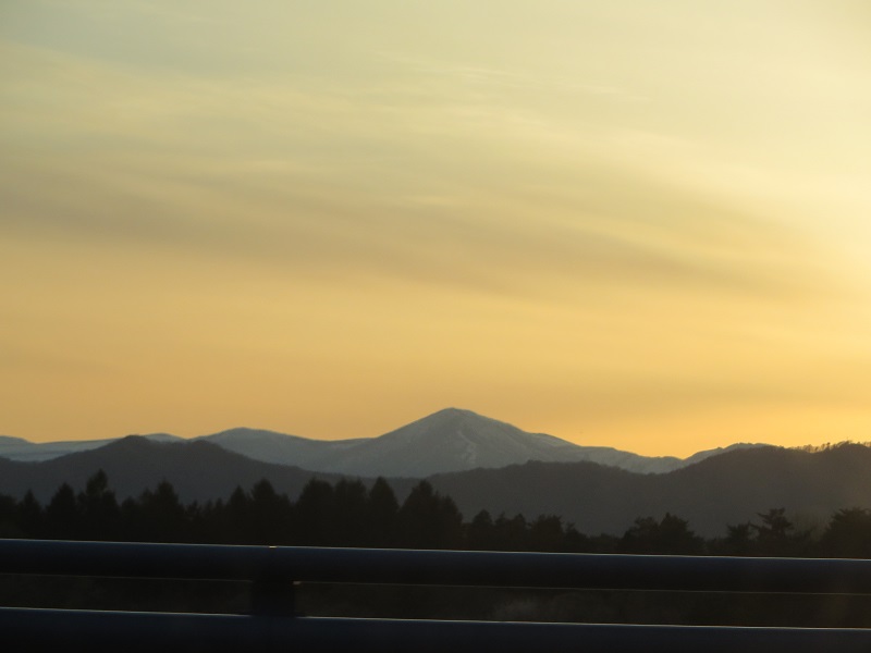 黄砂の陽と晴れの日の山の見え方の違いです。