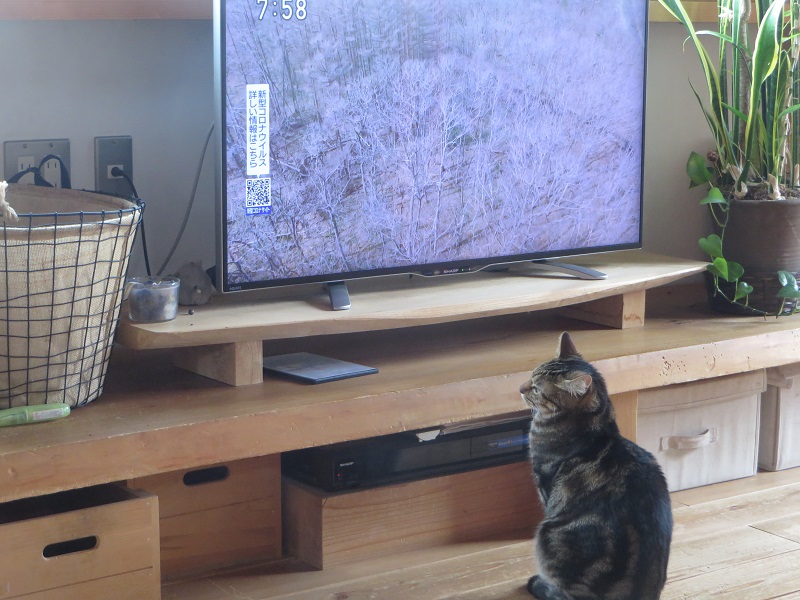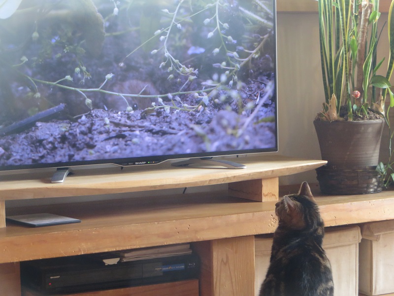 鳥の動画だけでなく、テレビの画面の映像そのものに興味がある様です。