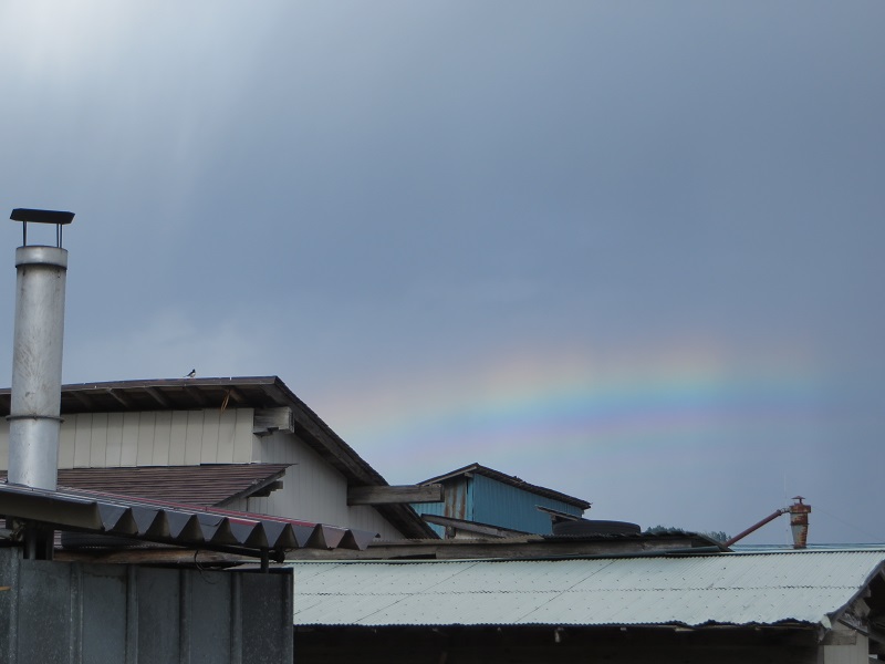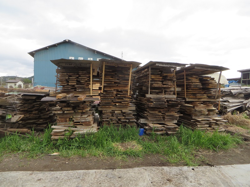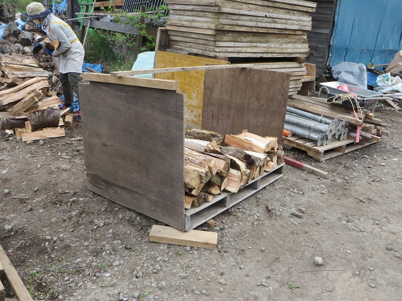 場内の屋根の下には製材した梁や板材がきっちりと積み込まれたので、空き地に置くしか出来なかった板類には簡易的に屋根を造り置きしました。これを大工が手早くしてくれたので、有難いものです。