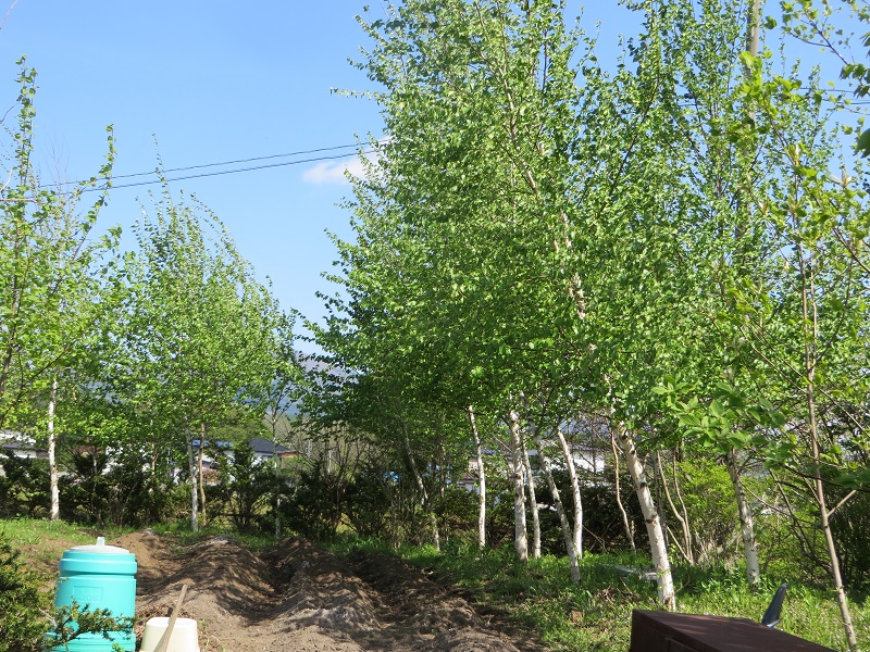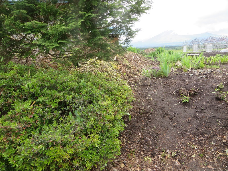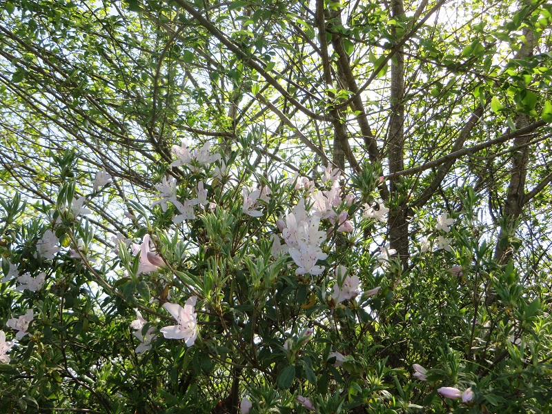 当社の裏庭の奥にある家庭菜園畑です。通路沿いではツツジも咲いて綺麗です。