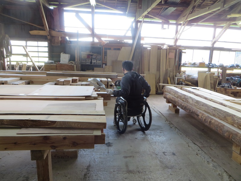 車椅子大工は仕事終わりには何時でも掃除をする姿を見せます。偉いです。