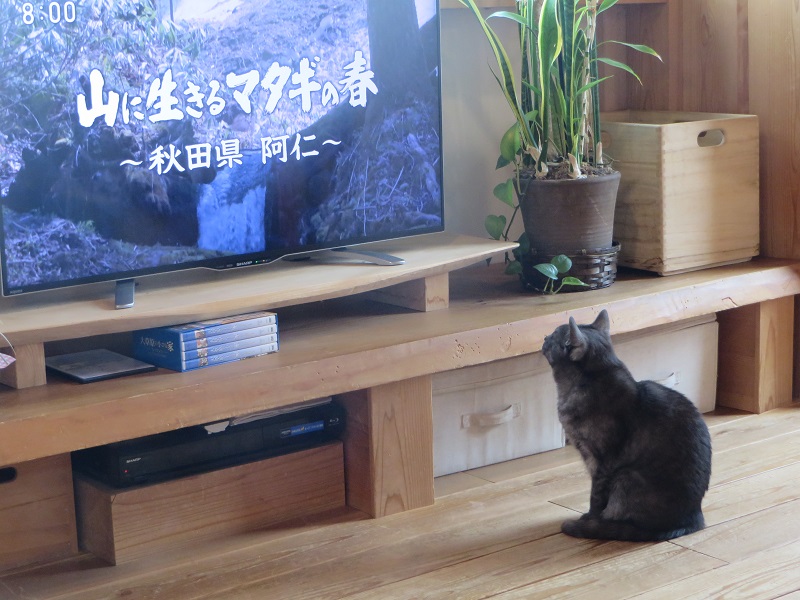 度々の登場ですが、テレビを見て画面のネズミに反応している猫と甘え猫です。
