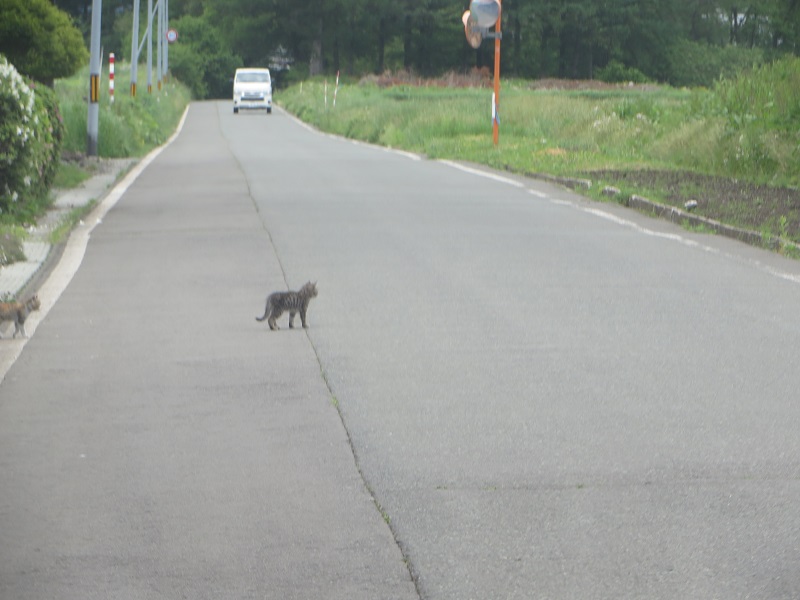 通勤路で、する奥発電所の作業と子猫を見ました。