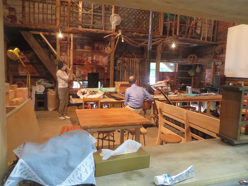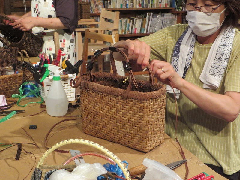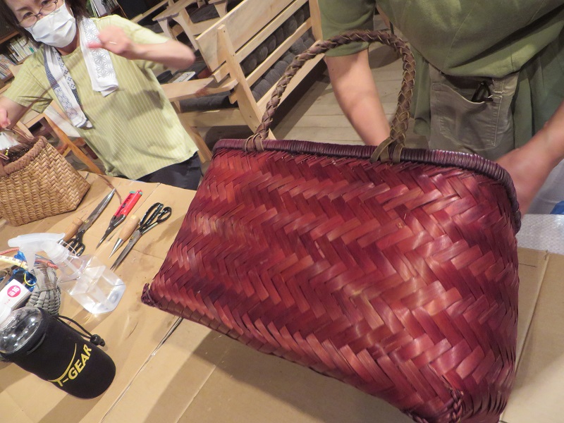 皆さん自分の樹皮編みカゴが出来てきた模様です。