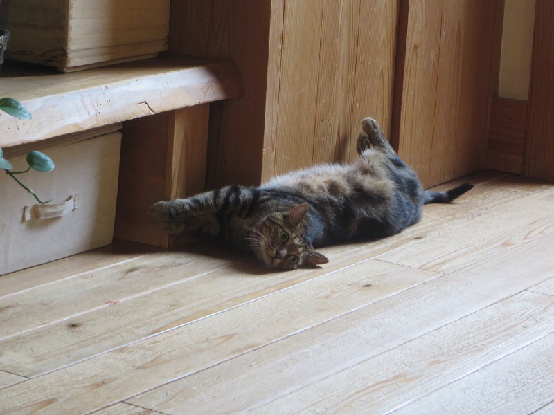 毎日暑くて、猫もぐったりしています。でも部屋は冷房が効いて、その電気代は太陽光発電パネルが100%賄ってくれています。