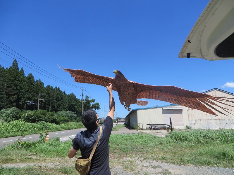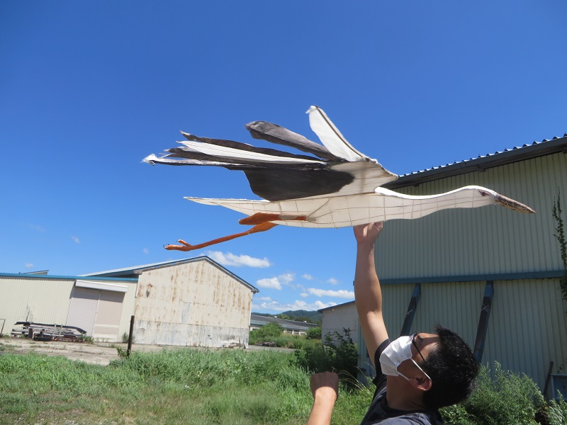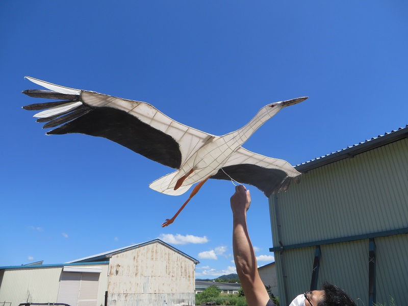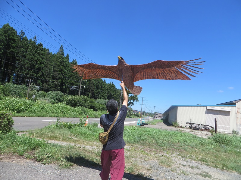 7日土曜日に、写真の凧造りしている方がいらっしゃいました。凧と聞くと平面的なものを想像してしまいますが、立地的なものでした。