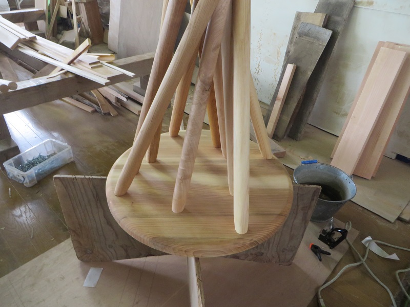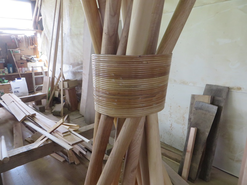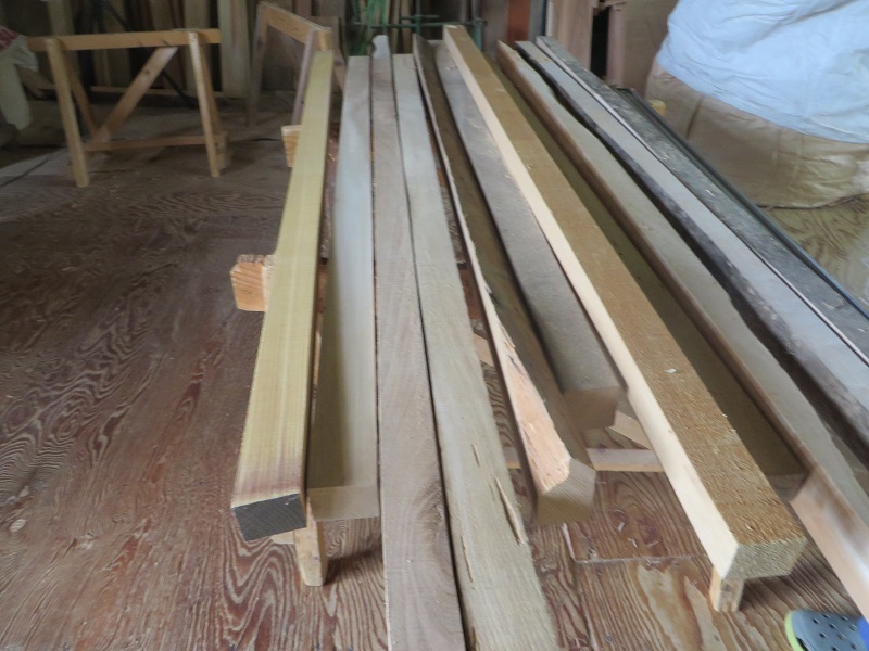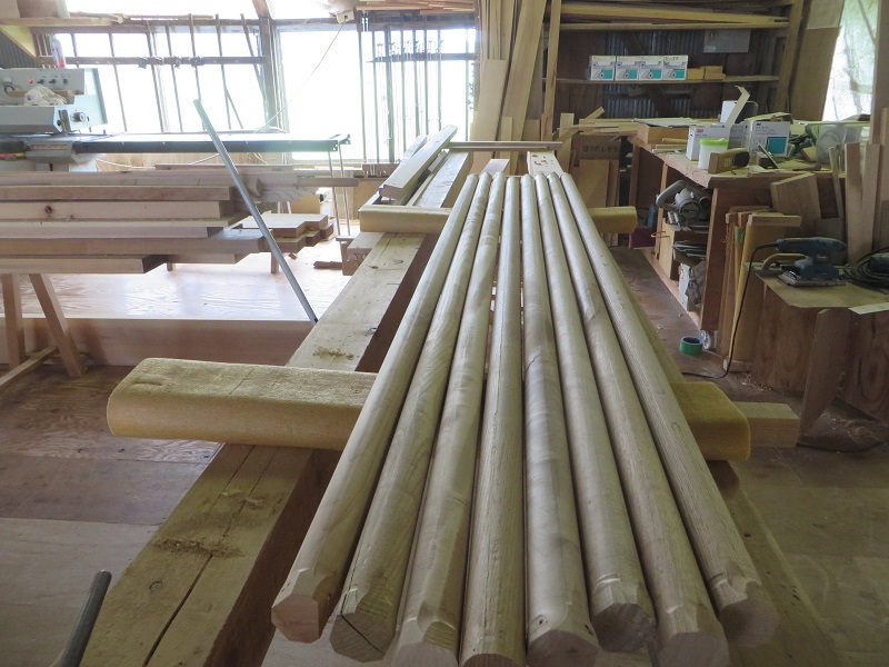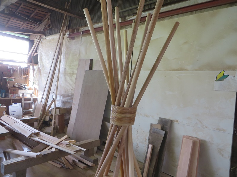 ケヤキ・ナラ・カツラ・スギ・ヒノキ・アカマツ・クルミの色々な樹種の木の丸棒造りをしています。