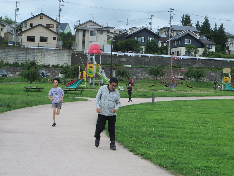 啄木の里マラソンに出場の為、孫たちと練習したのですが、コロナで中止になってしまいました。
